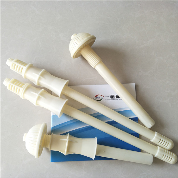 BAF长柄滤头应用于滤池气水反冲洗配水系统;短柄滤头应用于滤池单水反冲洗和重力式、压力式滤罐及离子交换滤床等配水过滤系统。BAF长柄防堵滤头既可适用于生活饮污水处理,也可适用化工、印染、造纸等各种工业用水处,同样可以应用于各行业工业废水,生活污水处理工程中,BAF长柄防堵滤头能很好的固定在滤板上,其有一个5mm的底部网堵,能防止滤料在滤头破损的情况下防止滤料的流失。