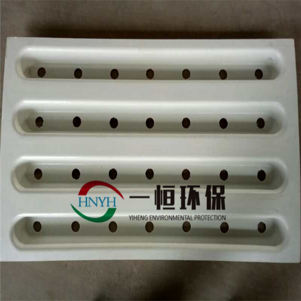 整体浇筑滤板模板采用ABS或玻璃钢制成的楞型板,以确保浇筑时模板的强度,凸台上开有带颈套的圆孔用以固定可调式滤头的预埋座。